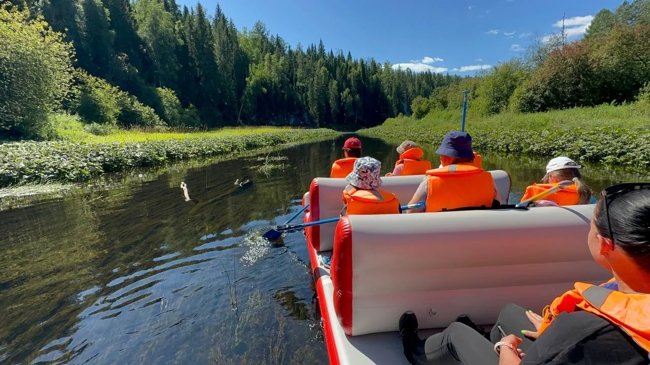 Дорога превращается в увлекательный интерактив с играми и познавательными заданиями об истории освоения Урала. Вместо скучных фактов — диалог, юмор и вовлечённость. По прибытии ребят встречают опытные инструкторы, которые знакомят с маршрутом и помогают подготовиться к водному путешествию по реке Серге.