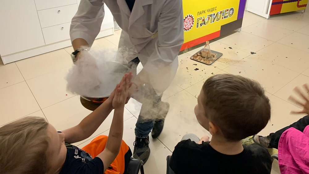 Безопасное волшебство: Все опыты под контролем учёных-аниматоров в защитных костюмах.